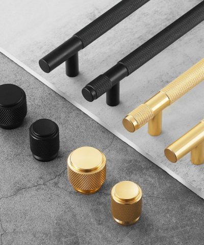 Be the first to review “Gold / Gray Square Line Pattern Cabinet Drawer Handle”